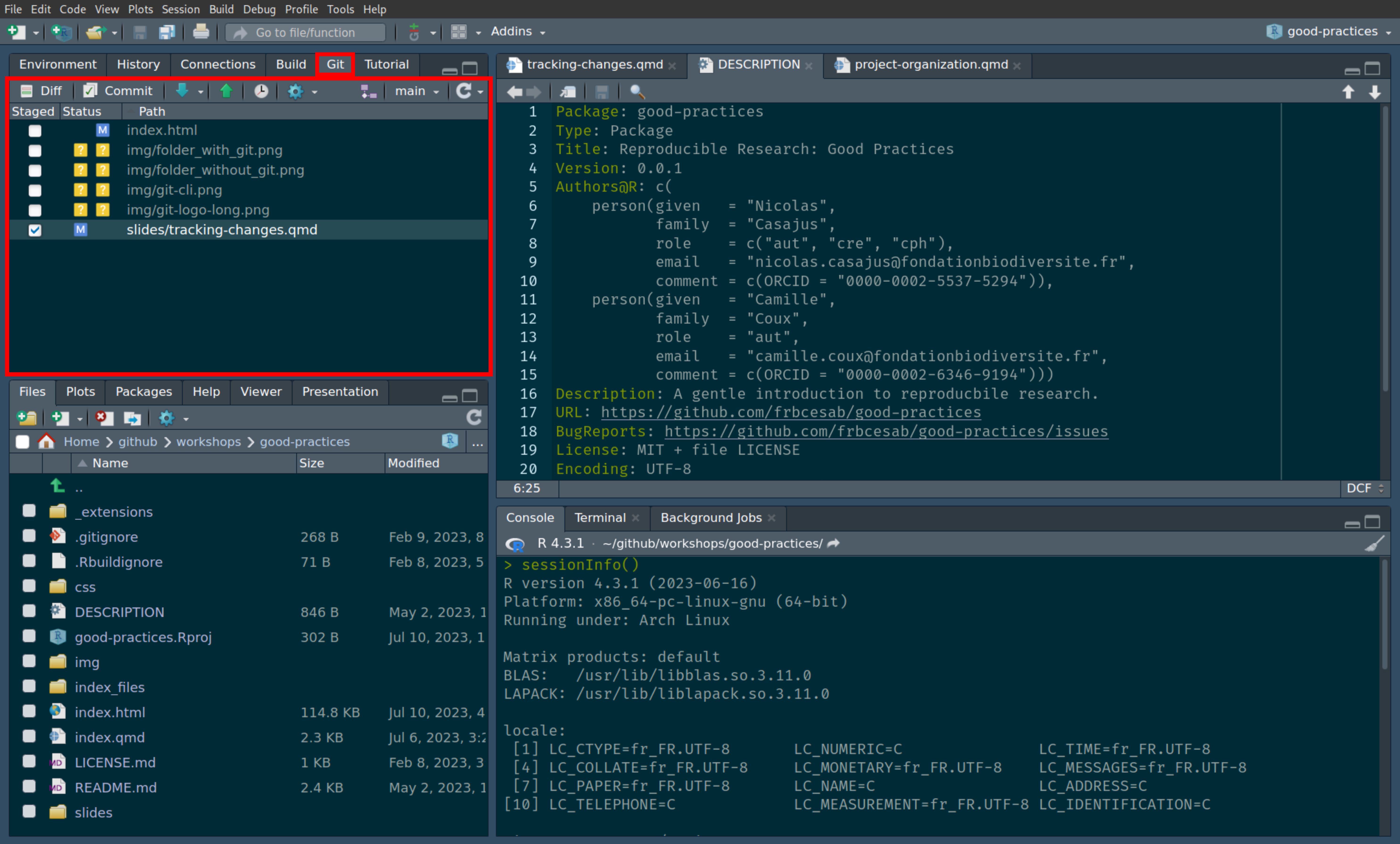 According to Wilson et al. (2017)1, good practices for a better reproducibility can be organized into the following six topics:
