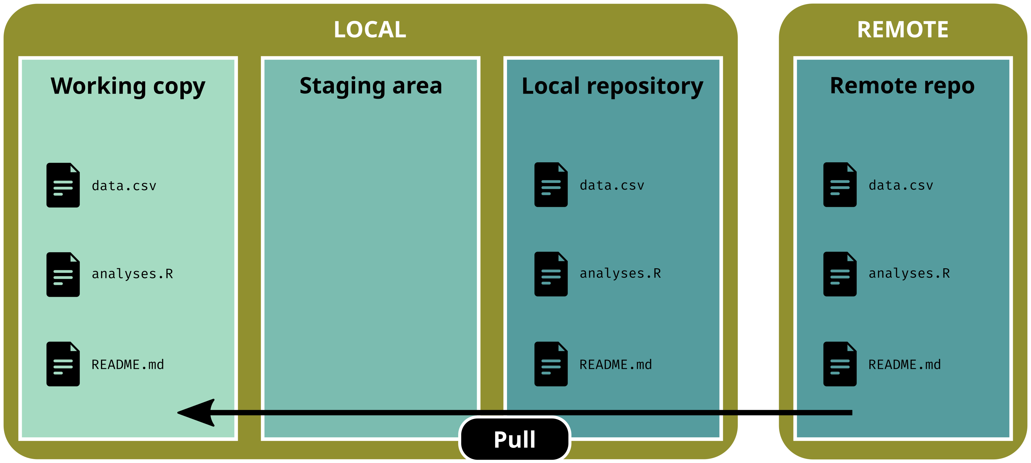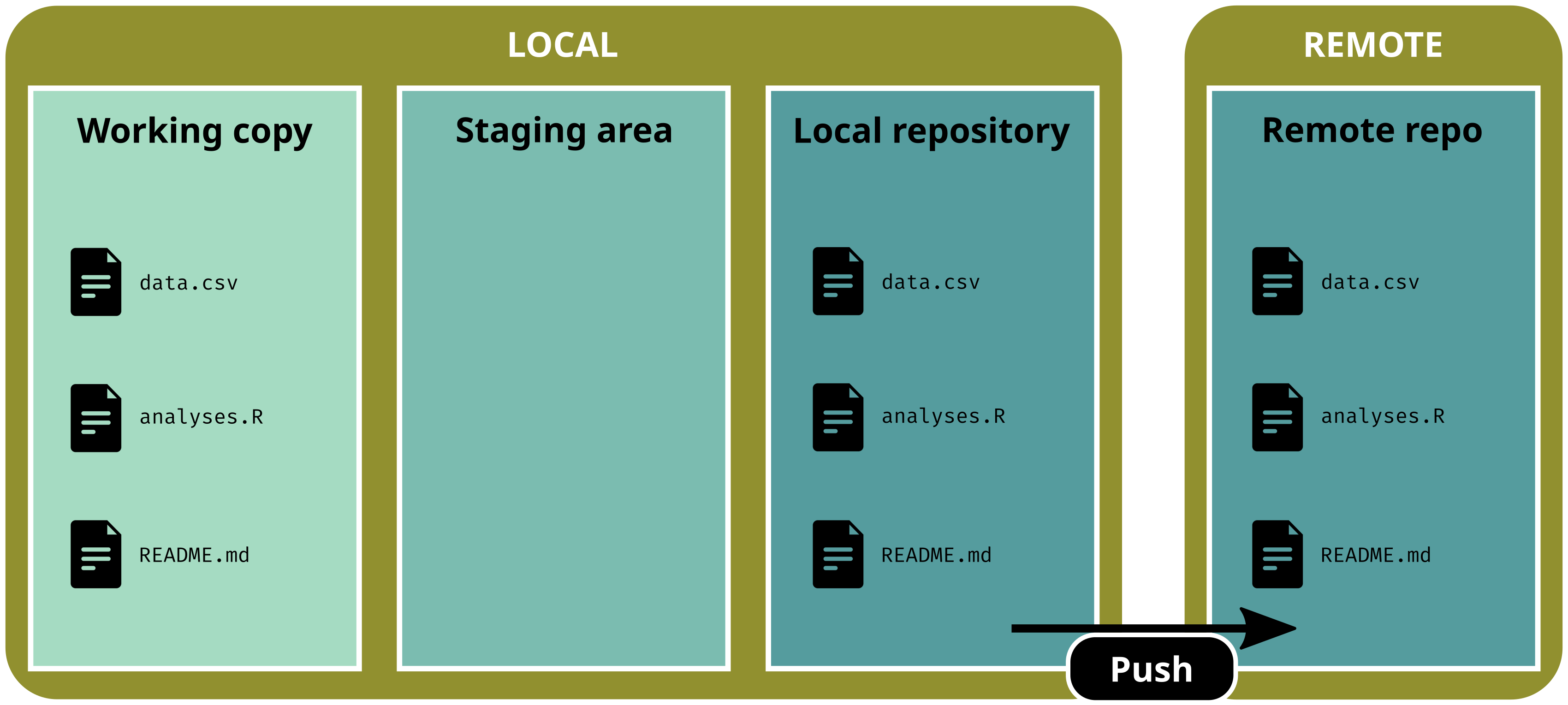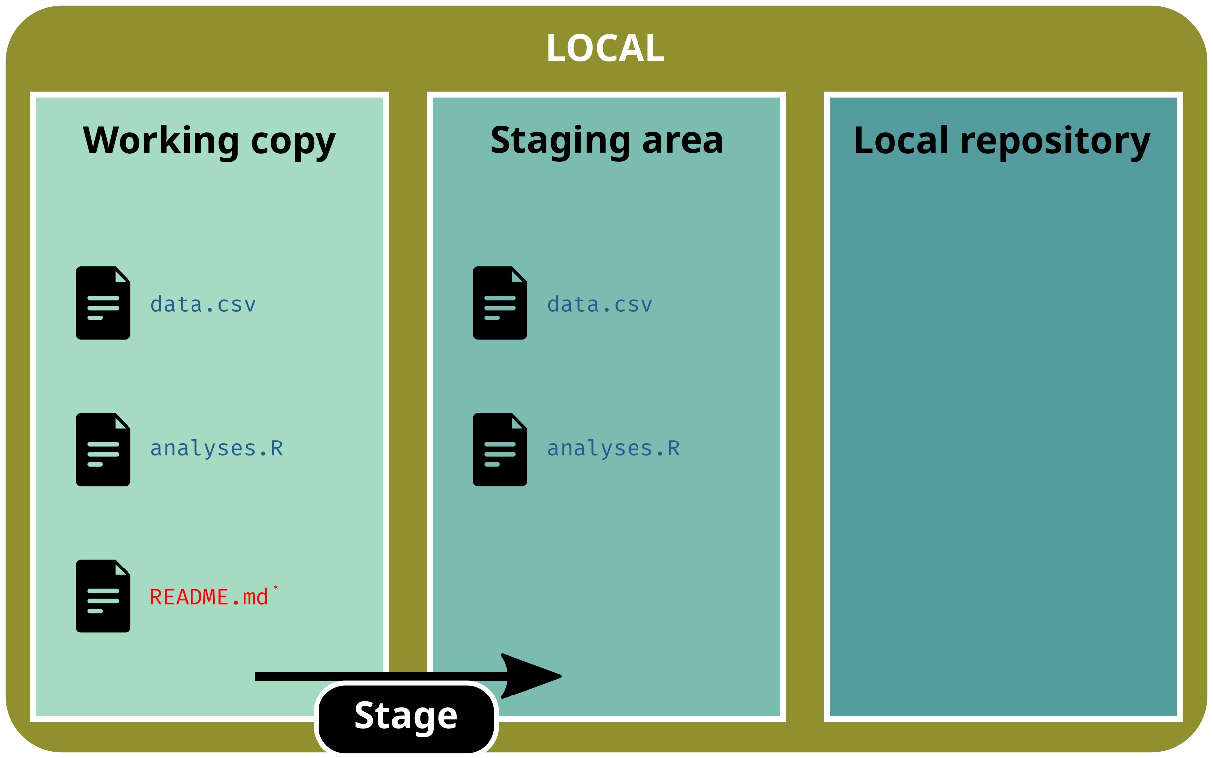 git status# On branch main# # No commits yet# # Changes to be committed:# (use "git rm --cached <file>..." to unstage)# new file: analyses.R# new file: data.csv# # Untracked files:# (use "git add <file>..." to track)# README.md