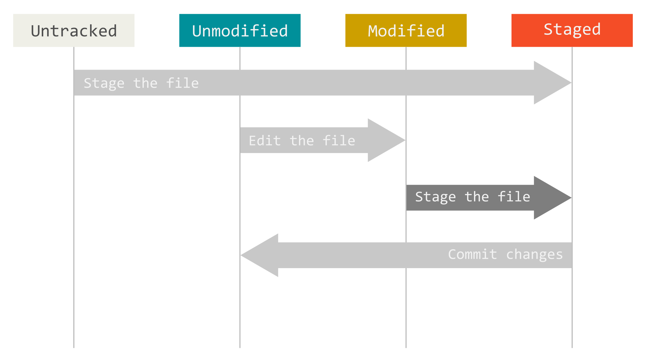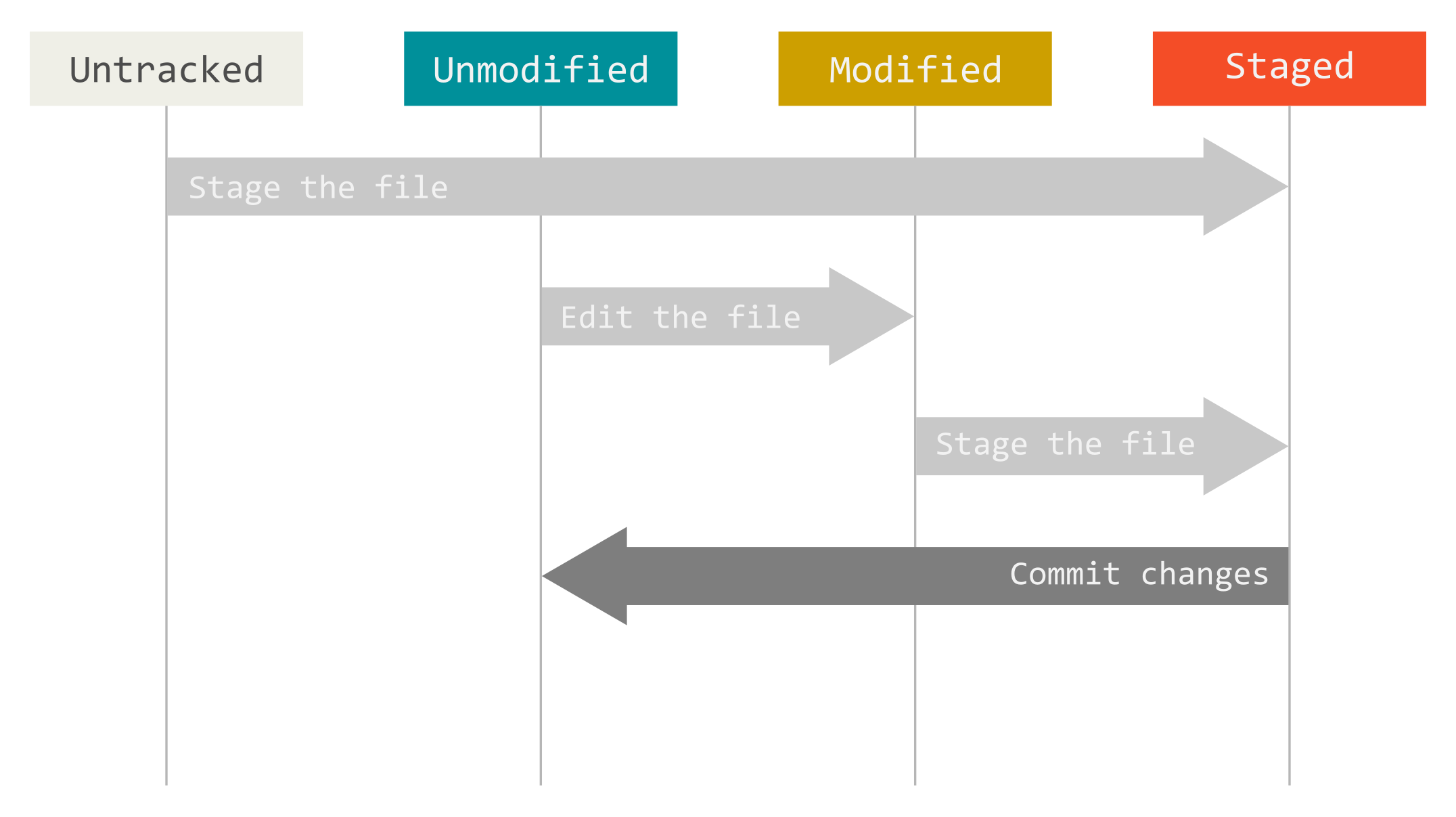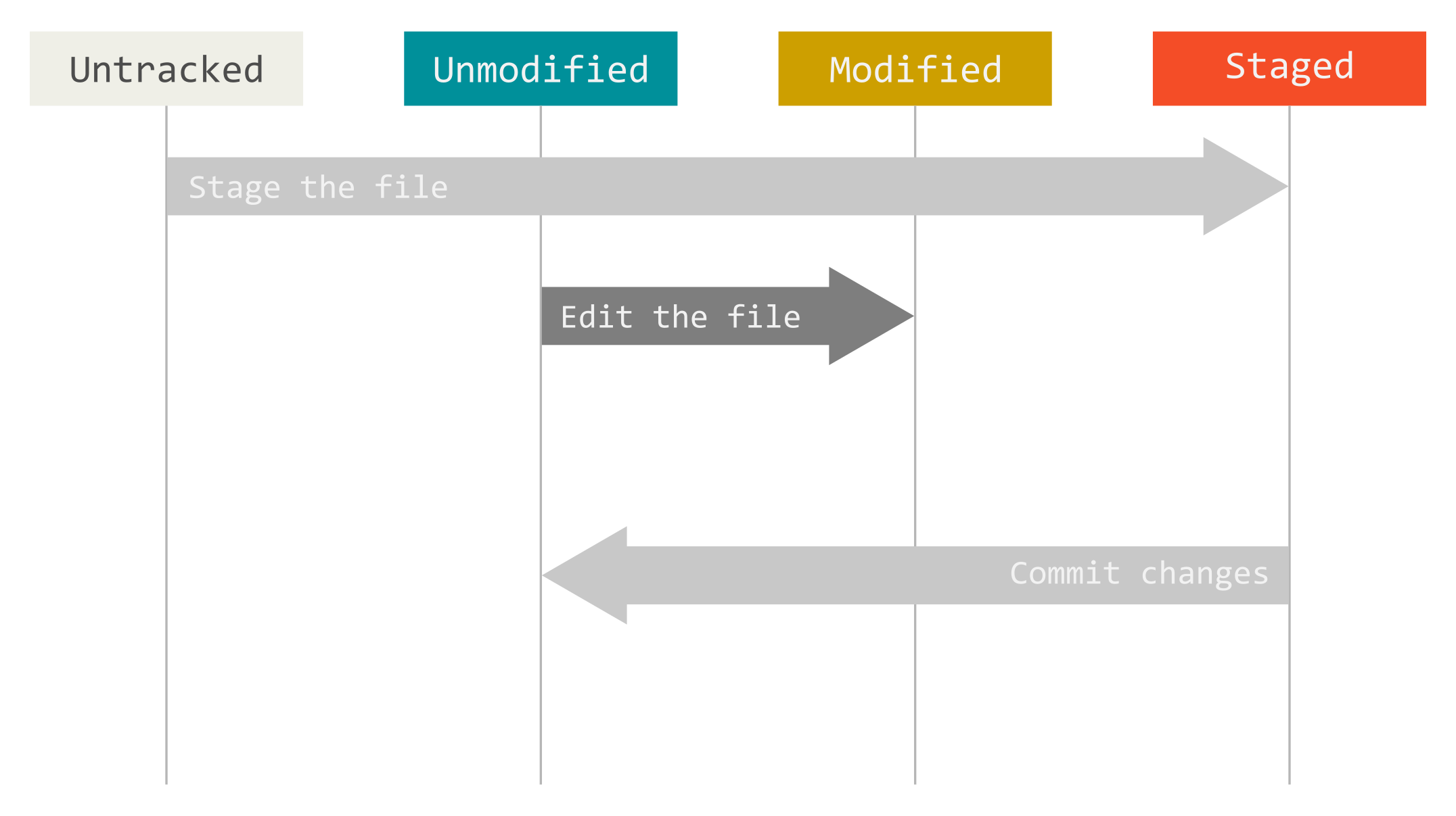 With git a file can be untracked or tracked1. If it’s tracked, it can be: