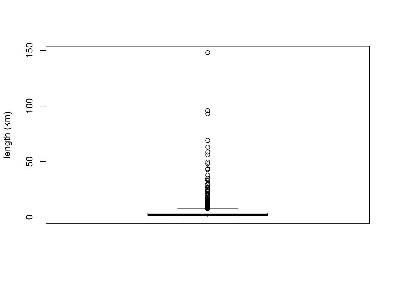 boxplot(river$length_km, ylab = "length (km)")