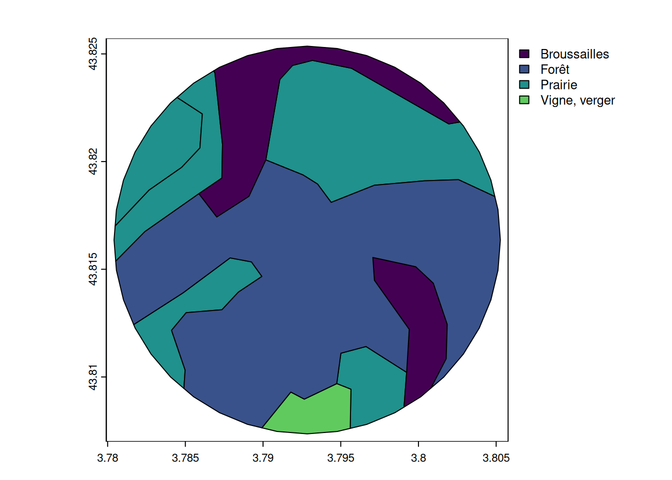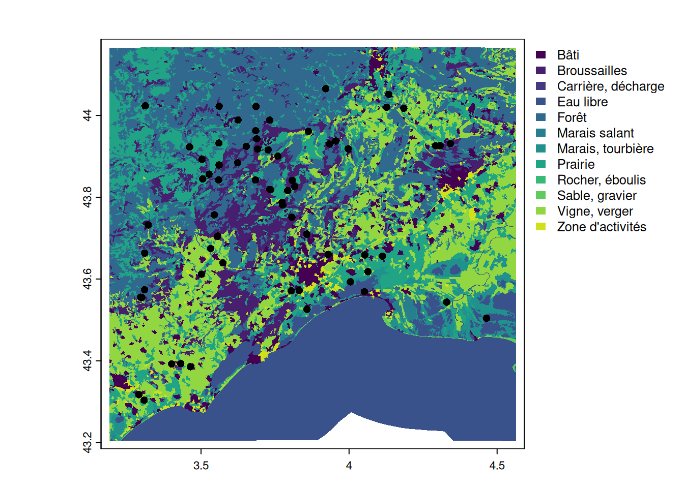 Note that this dataset has rough resolution (OSO or Corine land cover would be more suited for real analysis), but it’s perfect for our illustration and learning purposes.