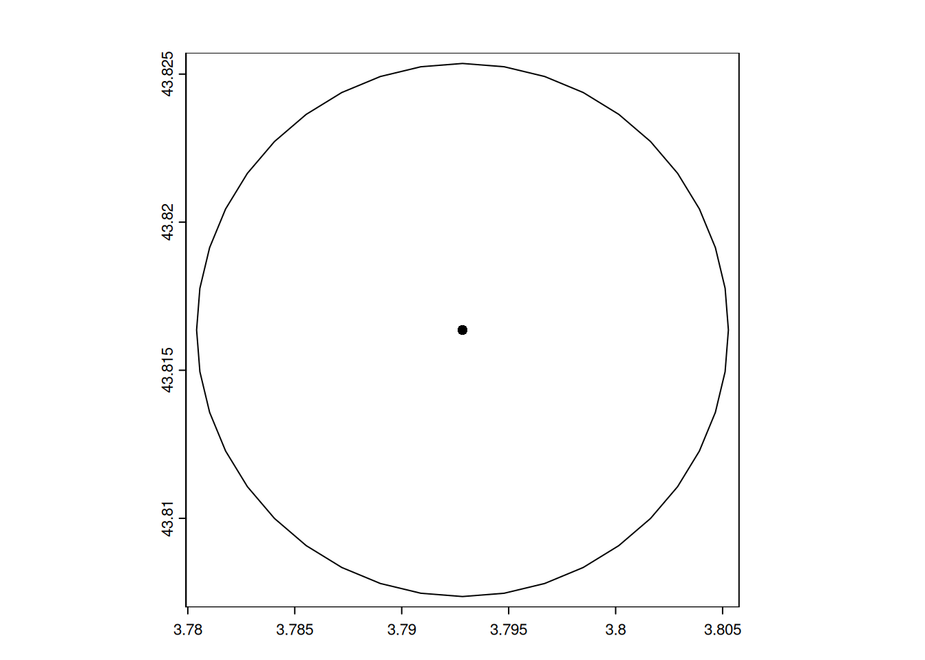 poly_otter <- buffer(pt_otter, dist_buffer)Same here, sf uses s2 with geographic coordinates (e.g. EPSG:4326) which creates buffers with low quality (as in sf 1.0-21 on 03/11/2025).