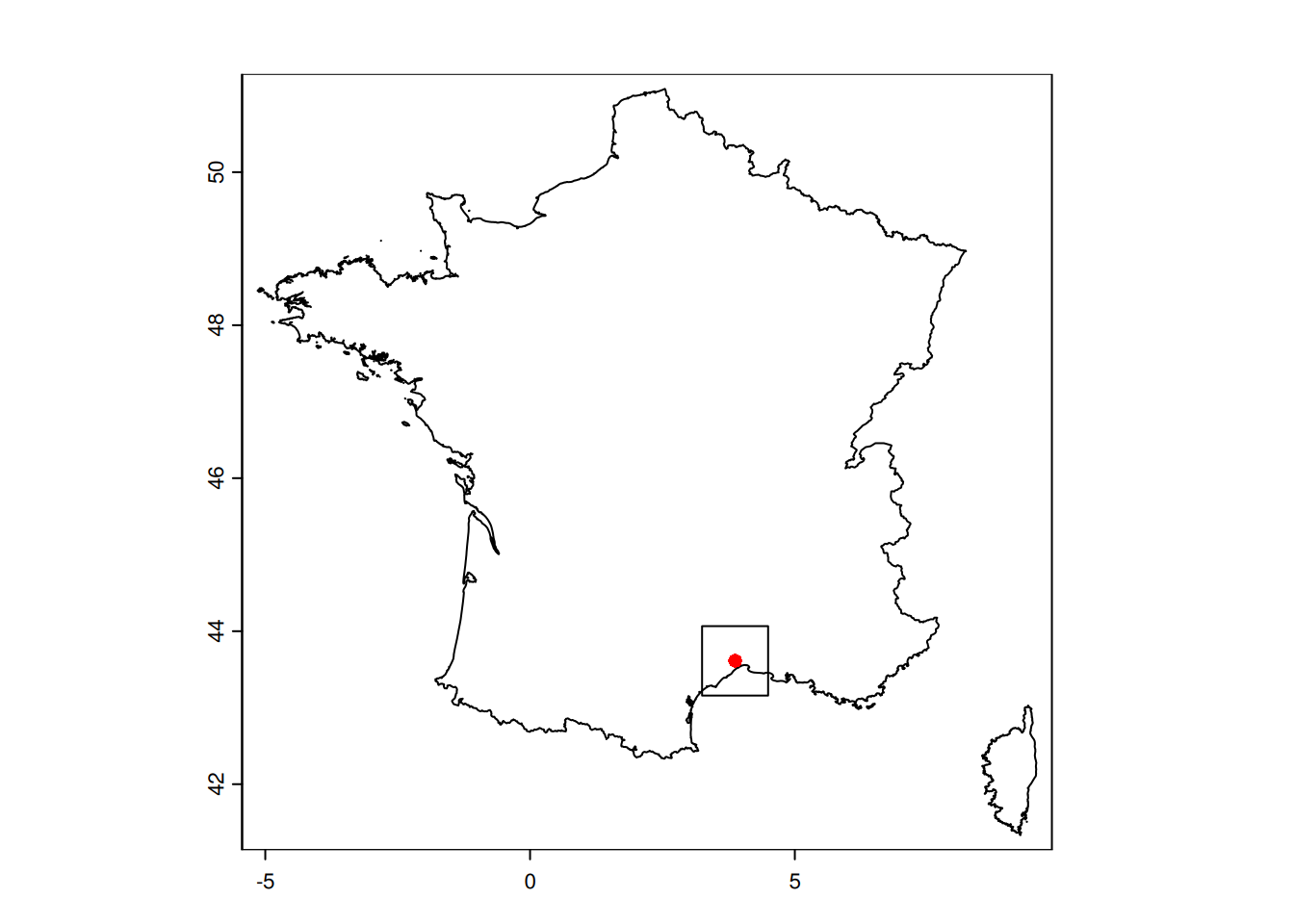 We will use the border of France as a mask, to remove the sea from the datasets.